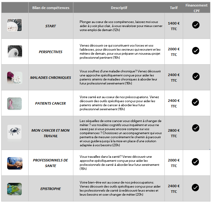 Les tarifs ci-dessous s’appliquent aux personnes finançant elles-mêmes leur bilan via le CPF :